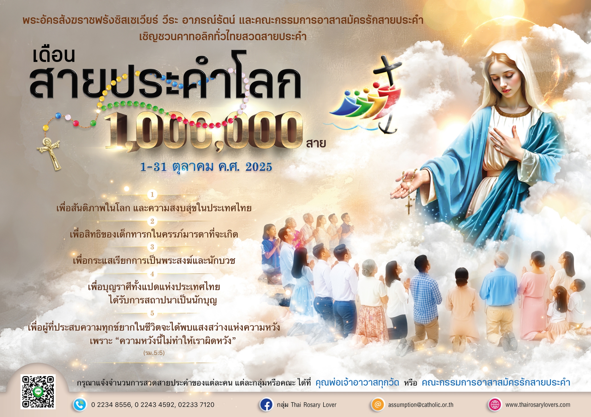 3. ขอเชิญพี่น้องร่วมเปิด เดือน “สายประคำโลก” ในวันเสาร์ที่ 4 ตุลาคม 2025 เริ่มตั้งแต่เวลา 08.00-12.00 น. ณ อาสนวิหารอัสสัมชัญ