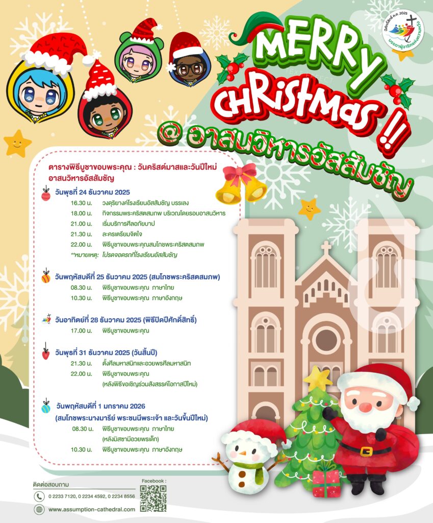 1. ขอเชิญร่วมพิธีบูชาขอบพระคุณ และมอบเครื่องราชย์ ของสมเด็จพระสันตะปาปาเลโอ ที่ 14 ซึ่งจะมอบแด่คริสตชนคาทอลิกไทยจำนวน 7 ท่าน ในวันอาทิตย์ที่ 30 พฤศจิกายน 2025 เวลา 17.00 น. (มิสซาภาษาอังกฤษ) โดยพระอัครสังฆราชปีเตอร์ บี. เวลส์ สมณทูตวาติกันประจำประเทศไทย ร่วมด้วยพระอัครสังฆราชฟรังซิสเซเวียร์ วีระ อาภรณ์รัตน์